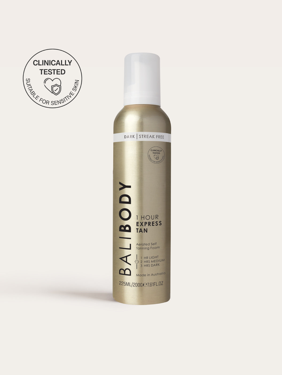 The new 1 Hour Express formula dries and develops quicker than Bali Body’s Self Tanning Mousse. While the 1 Hour Express will provide a quicker tan, the Self Tanning Mousse in shade Ultra Dark is the darkest shade of tan available in the Bali Body range.