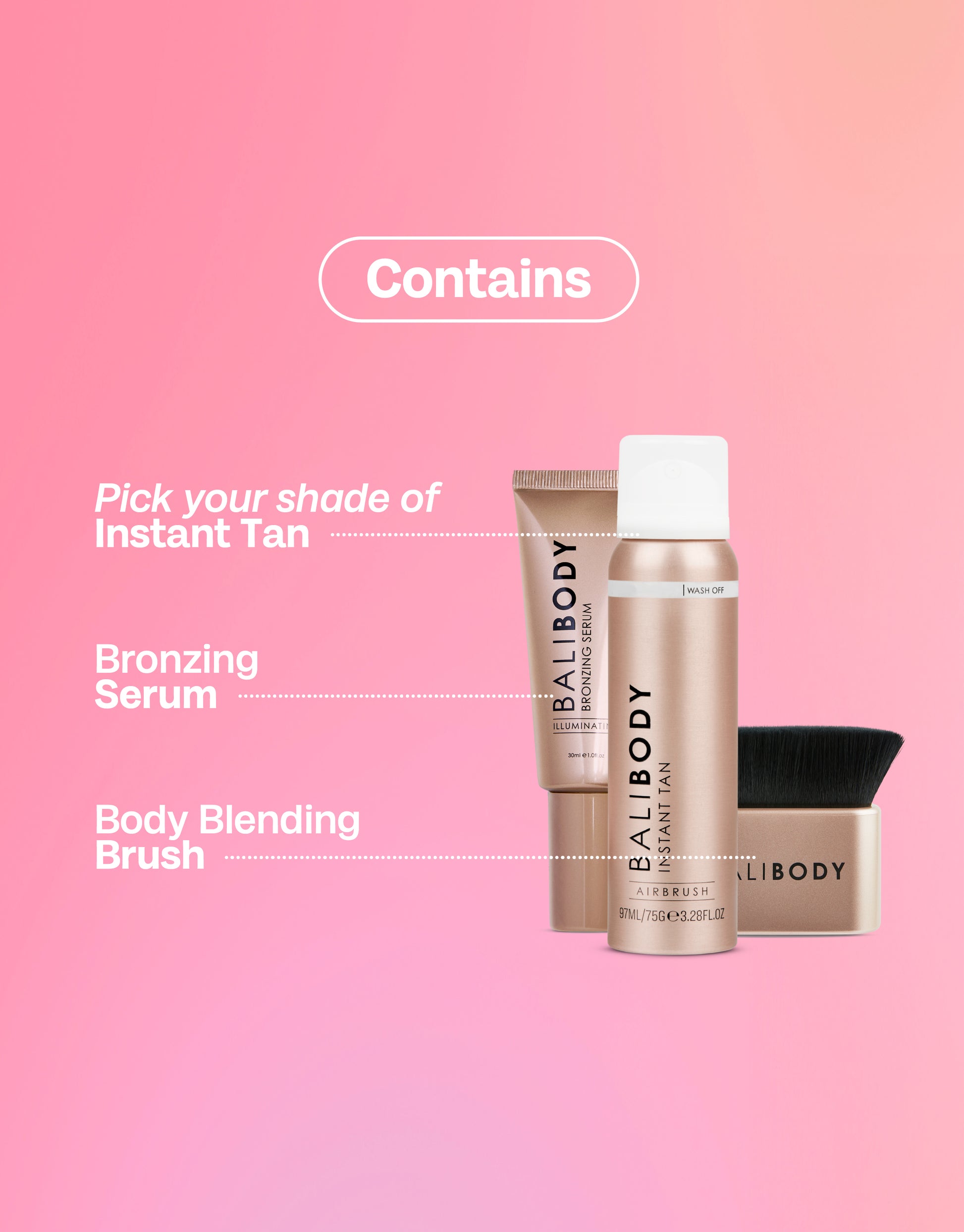 We created a Body Blending Brush specifically to apply the Instant Tan. The brush is designed to perfectly buff the Instant Tan into every contour of the body flawlessly.